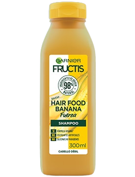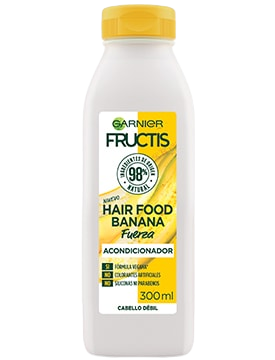 Descubre Fructis Hair Food Banana, la rutina para nutrir tu cabello. Enriquecida con banana, brinda energía, aporta fuerza y cuerpo a tu cabello. Ahora que ya sabes sobre los beneficios de la banana. Apuesta por la nutrición que te ofrece Hair Food de Garnier. No te arrepentirás.